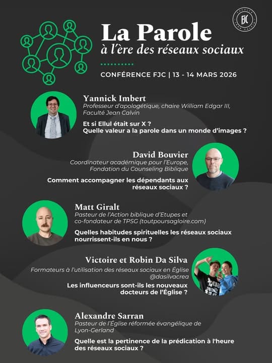 La première question : à quoi sert la parole ? Est-ce que nous cherchons encore à dire, à entrer en relation ? Et voici la deuxième question : au milieu de ce flot incessant, quelle place la Parole de Dieu peut-elle occuper ? Ces deux questions sont cruciales et méritent que les disciples de Christ s’y intéressent. C’est aussi le sujet que la Faculté Jean Calvin a choisi pour sa Conférence FJC des 13-14 mars 2026 : « La parole à l’ère des réseaux sociaux ».